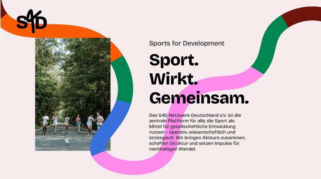 Das neue visuelle Erscheinungsbild von S4D basiert auf einem starken zentralen Element: der Linie. Sie steht symbolisch für Dynamik, Verbindung und Veränderung – zentrale Werte der Vereinsarbeit. Ergänzt wird sie durch ein frisches Farbkonzept, das zwischen Lebendigkeit und Klarheit balanciert, sowie eine moderne, gut lesbare Typografie.